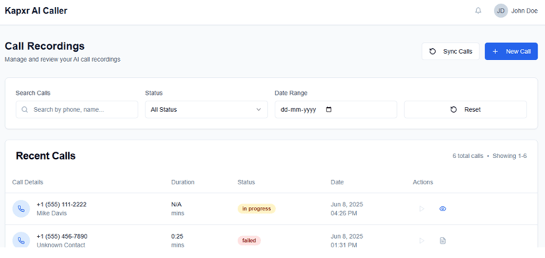 Acts as a control center for AI powered calls. Allowing users to monitor live calls Review past conversations, Check performance Access recordings/transcripts — all in one place
